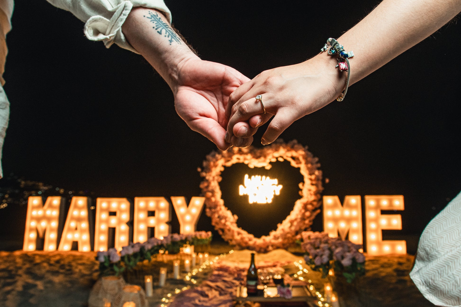 Creamos escenarios únicos: una propuesta de matrimonio  con letras luminosas “MARRY ME”, iluminación cálida, decoración romántica y un ambiente perfecto para ese gran momento. Cada detalle está cuidadosamente planeado para que el “sí” sea mágico.